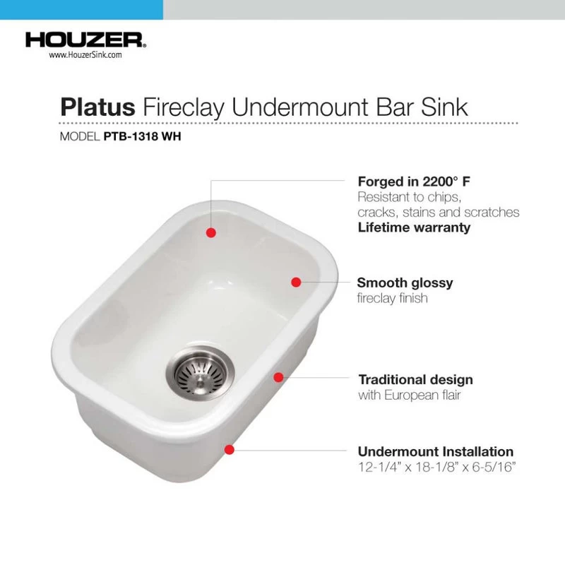 Grace the heart of your home with the timeless classic of a Houzer Fireclay Bar Sink. Fired for over 20 hours at 2200° F, the surface is impervious to stains, scratches and chips, backed by the confidence of Houzer’s guaranteed lifetime warranty. Houzer, a division of Hamat combines the latest in cutting edge technology using the most advanced injection molding techniques along with old world hand craftsmanship. Our fireclay sinks are crafted with 70 years of experience in our own Houzer ISO certified factories in Israel. This is what distinguishes Houzer from the rest. We are the designers, the artists and craftsmen creating our own work of art. Features: