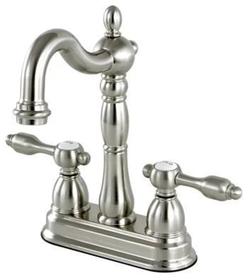 Vessel sink faucet from the Tudor Collection by Kingston Brass, the perfect piece to finish your traditional bathroom, Equipped with a ceramic cartridge and manufactured from solid brass for long lasting performance, Satin Nickel
