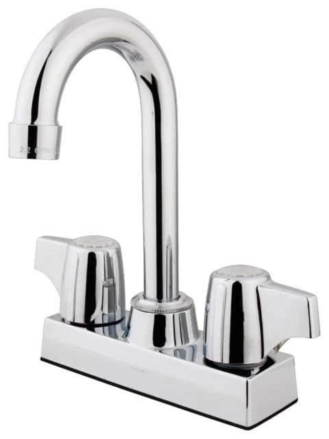 The 4″ centerset bar faucet is the perfect addition to your bar room or game room lavatory with its sleek body work and transitional look complementing other decor items. The twin canopy levers enables easy handling for water control. The faucet includes the Duraseal washerless valve and is made from solid brass for durability and reliance.