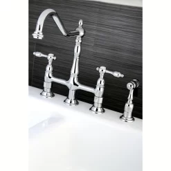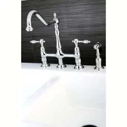 Kingston Brass Bridge Kitchen Faucet With Brass Sprayer, Polished Chrome