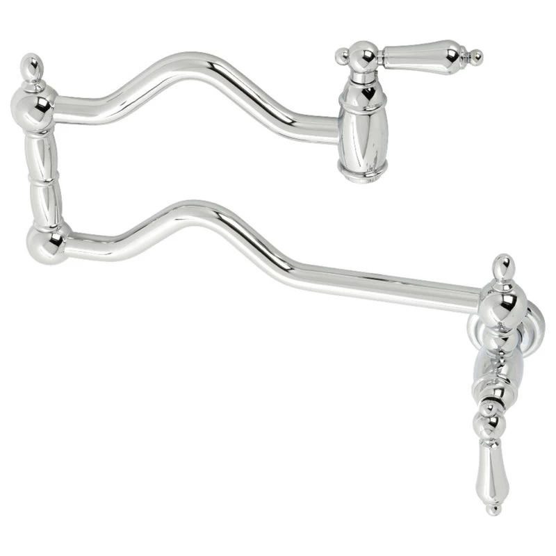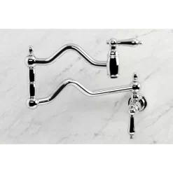 A lavish spark of traditionally stylized glamour is brought to your kitchen ensemble with this beautiful faucet. As an excellent tool to quickly, easily, and stylishly fill pots, eliminate strain on your joints. Pot-fillers are useful gadgets placed directly above the stove, providing easily accessible water. The foldable swing arms of this pot filler allow for extendable reach of up to 22-inch of length and provide long-lasting function due to their sturdy brass construction. Additionally, the dual handles prevent unwanted water spillage while enhancing the traditional theme.