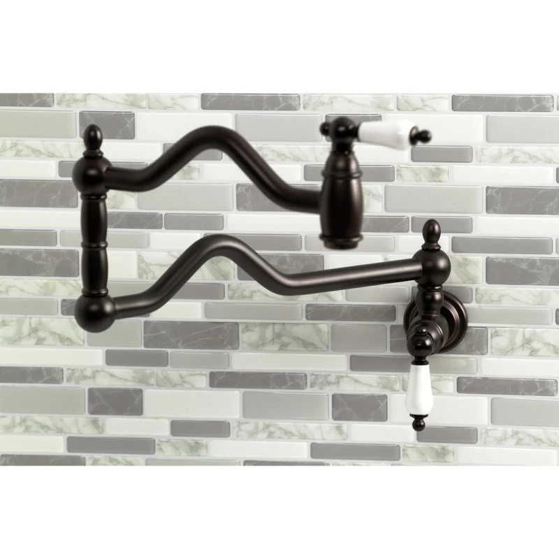 Kingston Brass KS2105PL Heritage Wall Mount Pot Filler, Oil Rubbed Bronze