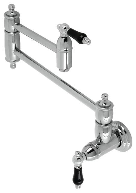 Crafted in commendations to English nobility, the exemplary design of this faucet manifests regality and elegance with its black porcelain handles. As an excellent tool to quickly, easily, and stylishly fill pots, eliminate strain on your joints. Pot-fillers are useful gadgets placed directly above the stove, providing easily accessible water. The foldable swing arms of this pot filler allow for extendable reach of up to 20-inch of length and provide long-lasting function due to their sturdy brass construction. Additionally, the dual handles prevent unwanted water spillage while enhancing the traditional theme.