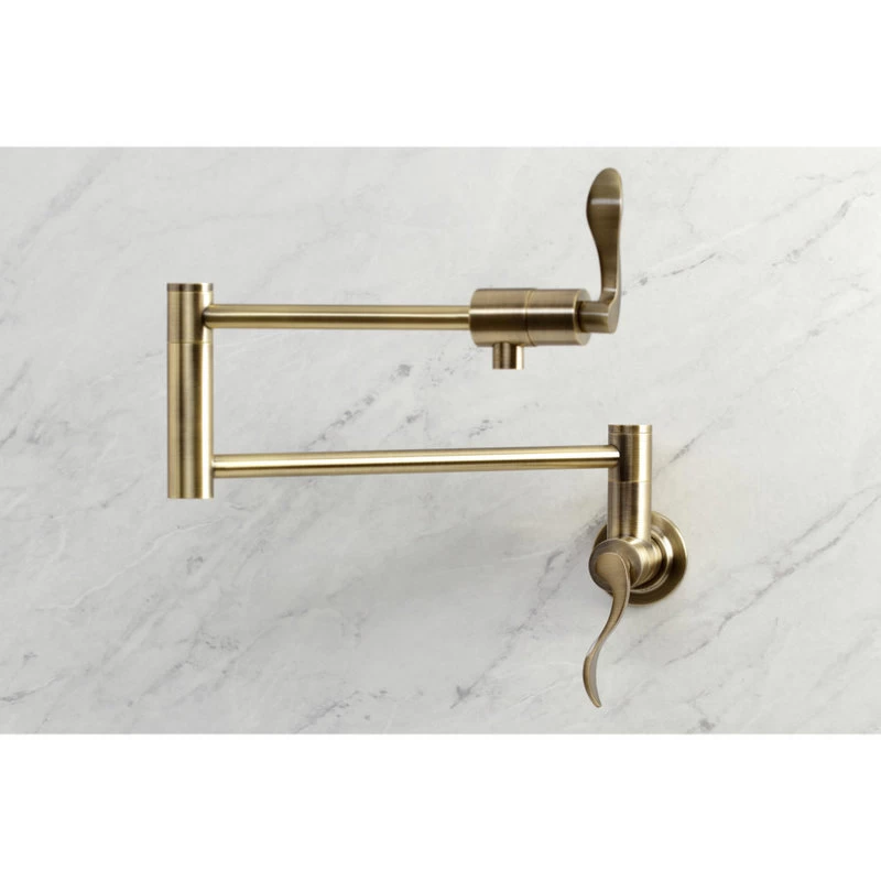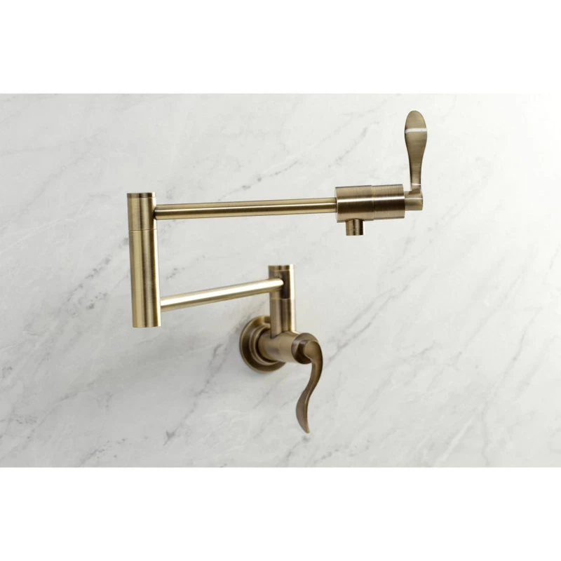 Kingston Brass KS4103DFL NuWave Wall Mount Pot Filler, Antique Brass