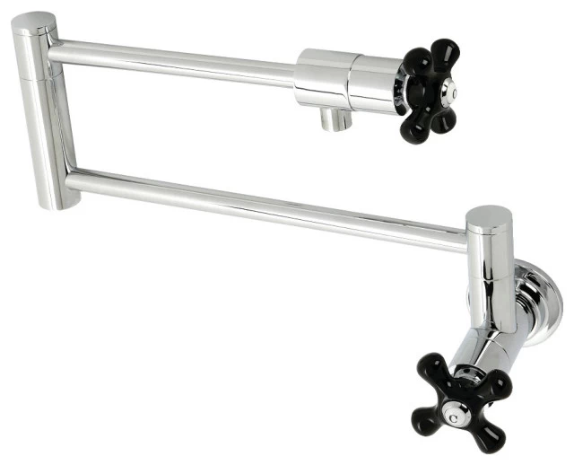 Crafted in commendations to English nobility, the exemplary design of this faucet manifests regality and elegance with its black porcelain handles. As an excellent tool to quickly, easily, and stylishly fill pots, eliminate strain on your joints. Pot-fillers are useful gadgets placed directly above the stove, providing easily accessible water. The foldable swing arms of this pot filler allow for extendable reach of up to 21.5″ of length and provide long-lasting function due to their sturdy brass construction. Additionally, the dual handles prevent unwanted water spillage while enhancing the traditional theme.