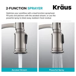 - Dual-function spray head offers aerated stream for everyday cleaning and powerful spray for heavy-duty rinsing