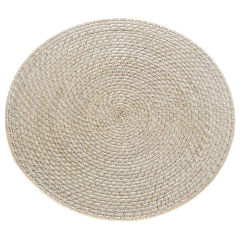 Set the most amazing tablescape with these hand woven placemats. Whether casual or formal the intricate weave in white wash colored Rattan adds an exotic and elegant touch.
