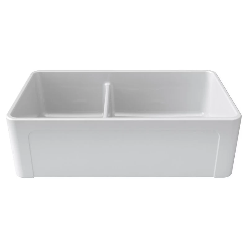 LaToscana Double-Bowl Reversible Fireclay Sink, White, 33″