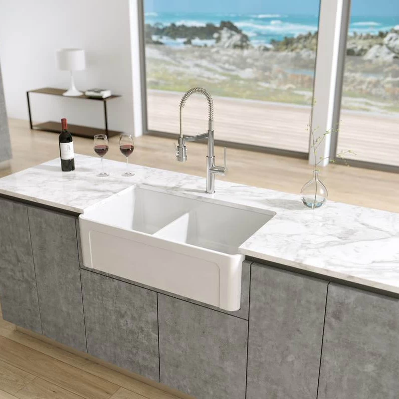 LaToscana fireclay kitchen sinks bring our inspired collection of Farmhouse sinks to your home and feature a double-bowl, reversible design. Our handcrafted sinks showcase the classic beauty of the farmhouse style with modern enhancements for ultimate functionality. These sinks are all designed and manufactured in ITALY. Farmhouse style sinks are a beautiful focus point for your kitchen and provides generous space for filling pots, stacking dishes, cleaning and preparing meals. The apron-front sink features a crisp white finish that brings clean, timeless beauty to your kitchen. Our Fireclay sinks are fully glazed for durability and easy maintenance.