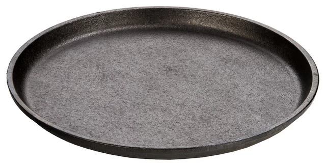 Serve sizzling fajitas, crispy chicken, and more with this round handleless serving griddle from Lodge. Made in the USA with seasoned cast iron, this griddle features a natural, easy-release finish. Ideal for presenting your culinary creations tableside, this griddle combines versatility with unmatched durability.