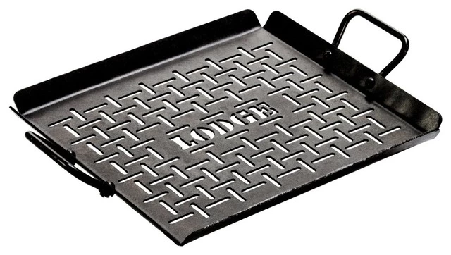 The Lodge 12″ seasoned steel grill pan expands the grill masters menu. The grid design allows for the perfect amount of smoke and sear, without losing your veggies or shrimp.