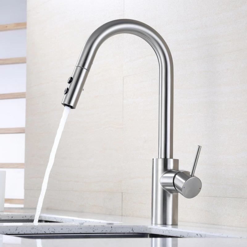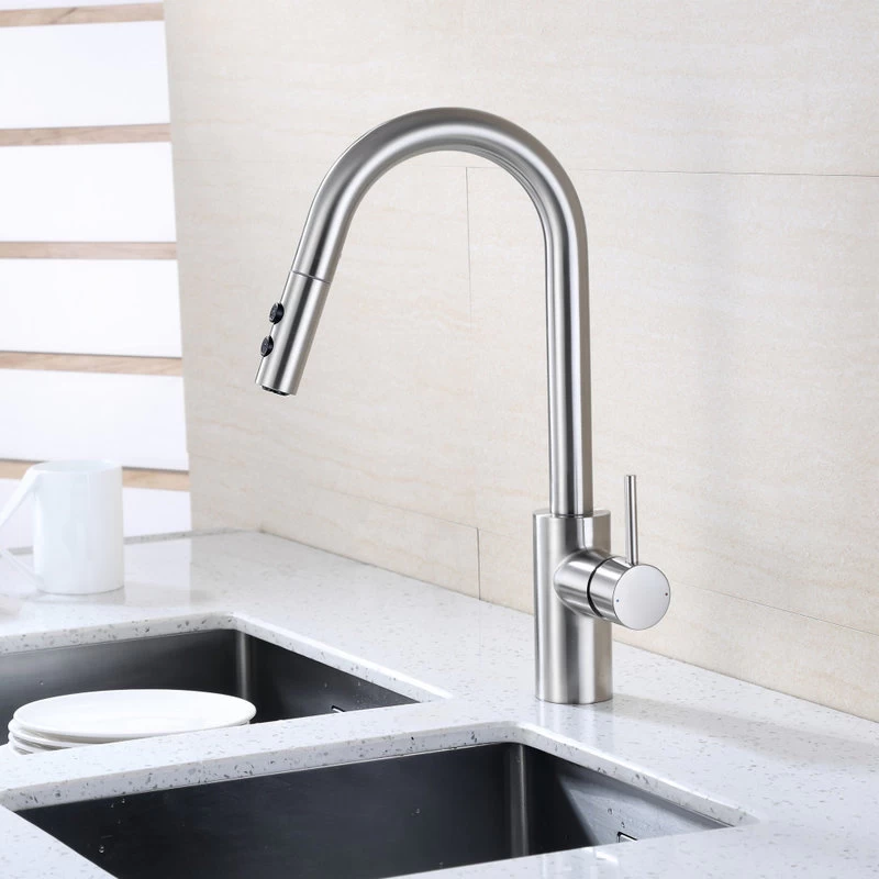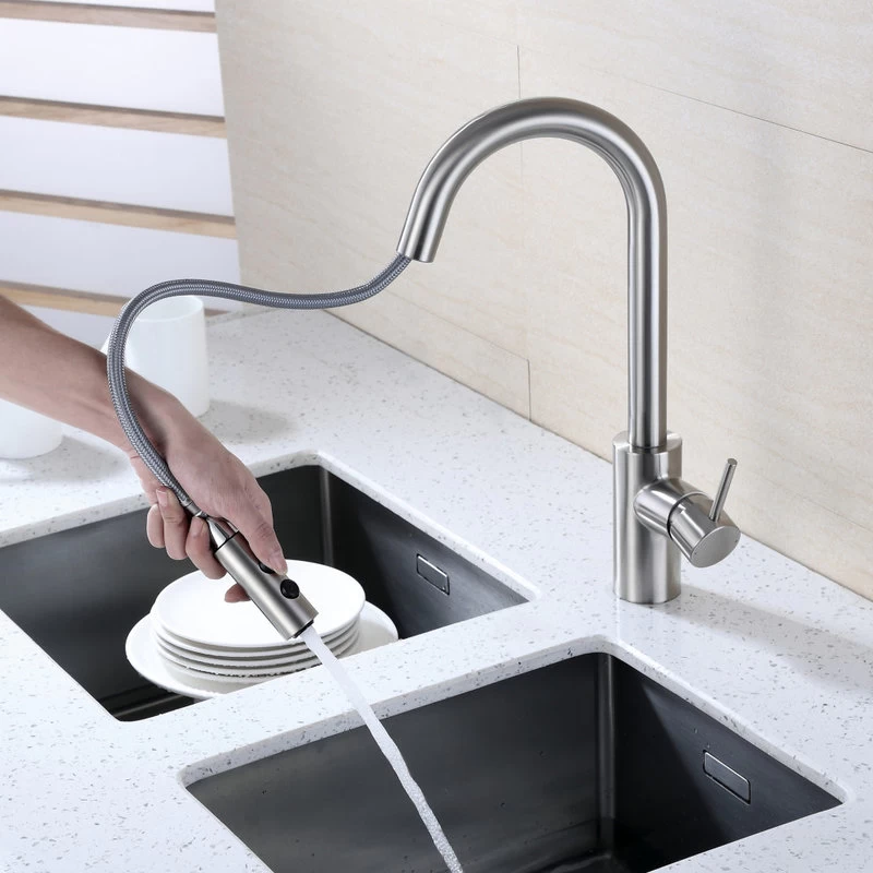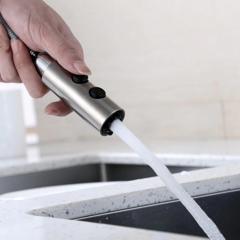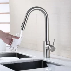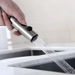 - A counterweight makes the hose easily retract back into the kitchen faucet