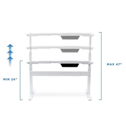 - Dual motor system for powerful, smooth, stable and quiet height adjustment. Solid steel frame for heavy-duty design and stability.