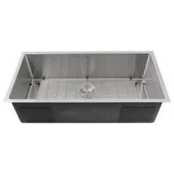 - This sink is crafted from 304 stainless steel in a lustrous satin finish.