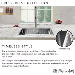 This small radius degree cornered single bowl barandprep square sink provides additional space and a fresh modern industrial look for any kitchen prep or barl. Channel groves are at the bottom of the sink to divert water for proper drainage. A great addition to your home.