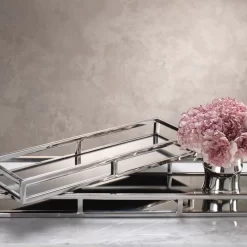 Simple accent pieces can make all the difference in reaching that finished look when decorating. Made of an aluminum frame with a mirrored base, the Aluminum Mirrored Tray is a charming addition to your decor. Top it with a small vase of flowers or decorative accents on top to give them an elegant reflective look.