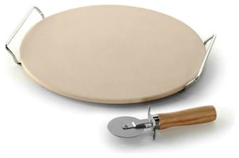 Produce brick-oven-style results at home! Stone heats evenly and absorbs moisture to produce a crispy, delicious crust. Perfect for pizza, calzones, flatbreads and even cookies. Includes 13” stone, serving rack and cutter.
