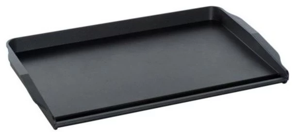 Prepare a delicious breakfast right on your stovetop with this backsplash griddle from Nordic Ware. Made of durable cast aluminum, this griddle features a raised backsplash to prevent spills on your stove. A drip reservoir in the front collects excess grease and oil, and the raised edges make it easy to flip eggs, pancakes, and more. Made in the USA this griddle is perfectly sized to fit on two burners of your stovetop and allows for cooking multiple foods at once.