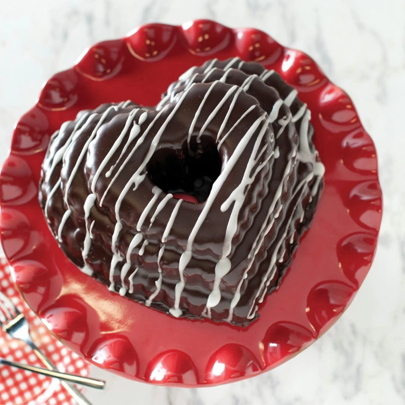 Bake up a delicious dessert with this tiered heart bundt pan from Nordic Ware. Made of cast aluminum, this pan features a heart shape. It is ideal for creating special cakes for anniversaries, Valentine’s Day, and more. Made in the USA and backed by a manufacturer’s lifetime warranty, this bundt pan is the perfect addition to any baker’s kitchen.