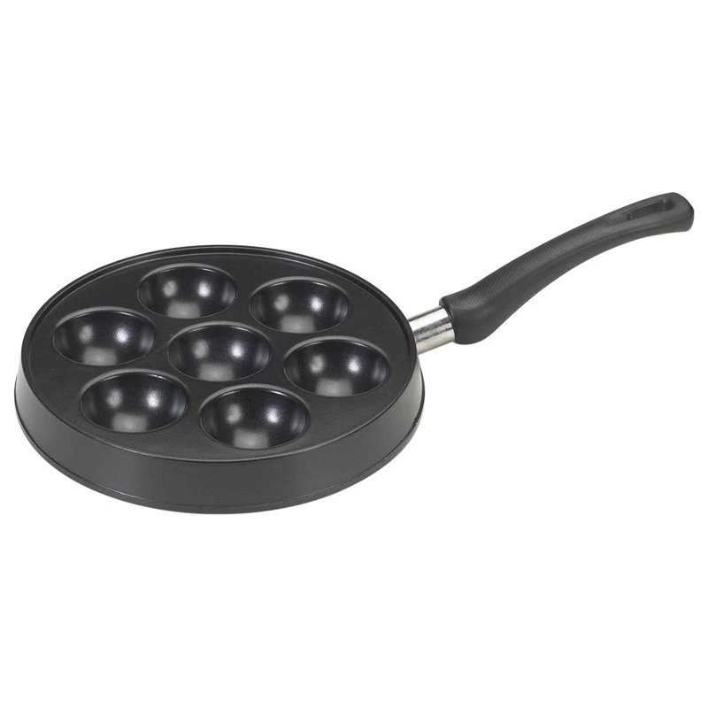 Break out your pancake mix and create traditional Danish Ebelskivers, delicious round pancakes with fillings inside, for breakfast. This cast pan from Nordic Ware makes up to seven 2-1/4 inch fruit or cheese-filled spherical creations at a time, perfect for dusting with powdered sugar and dipping into sauces. The non-stick surface makes flipping easy, as well as clean-up a breeze. The long comfortable handle makes this pan easy to use and is perfect for cooking delicious breakfasts and snacks for the whole family. Backed by a one-year manufacturer’s limited warranty, this pan is a great way to enjoy a classic treat any time.