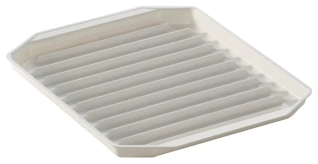 This Nordic Ware bacon rack is perfect for cooking bacon and sausages in the microwave. The plastic compact rack is great for smaller microwaves. The ridges allow the grease and fat to drain away from the food while cooking.
