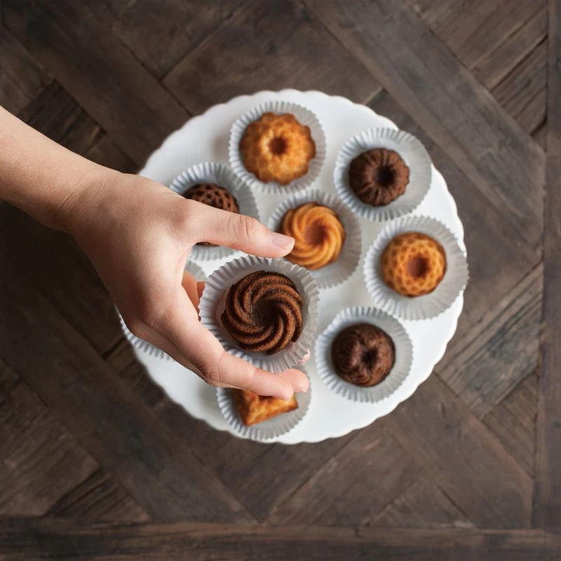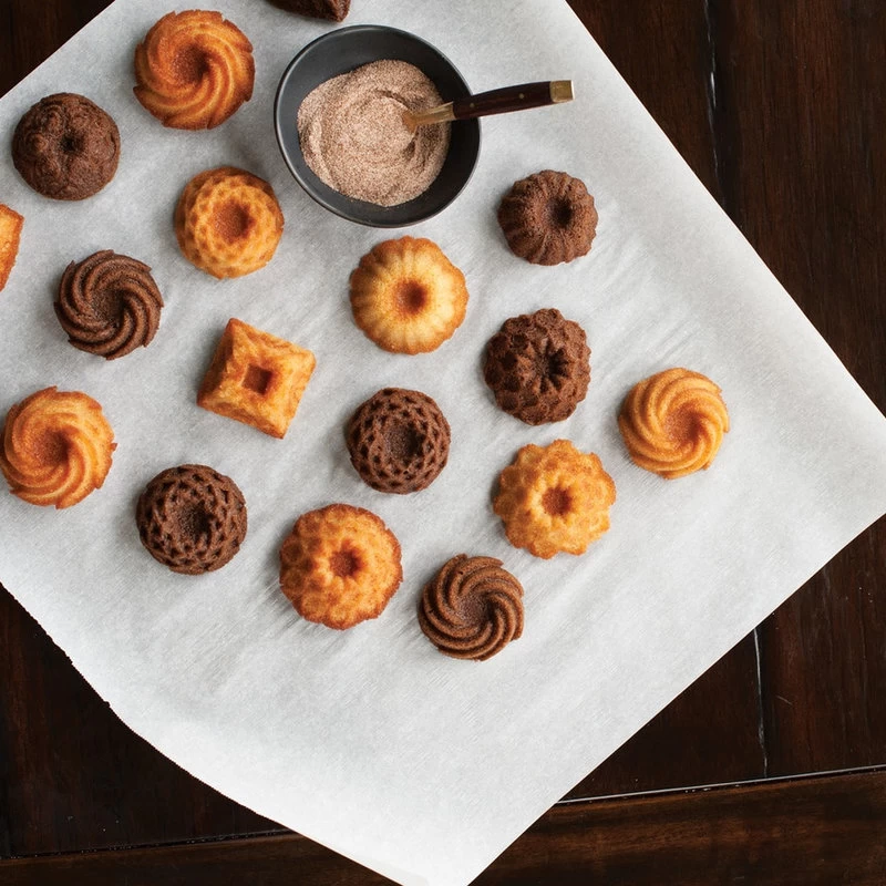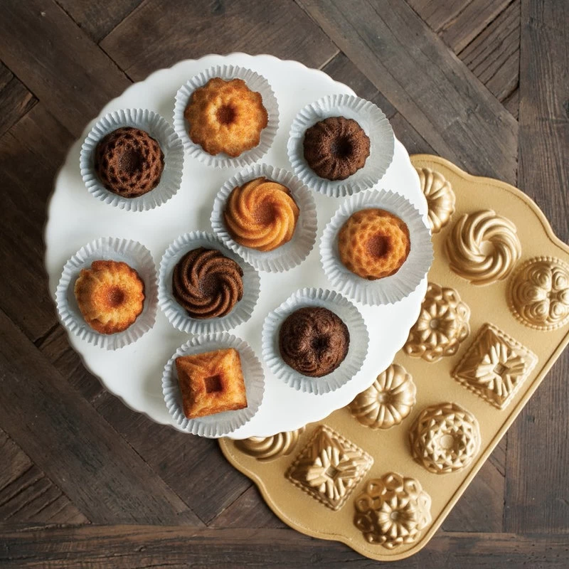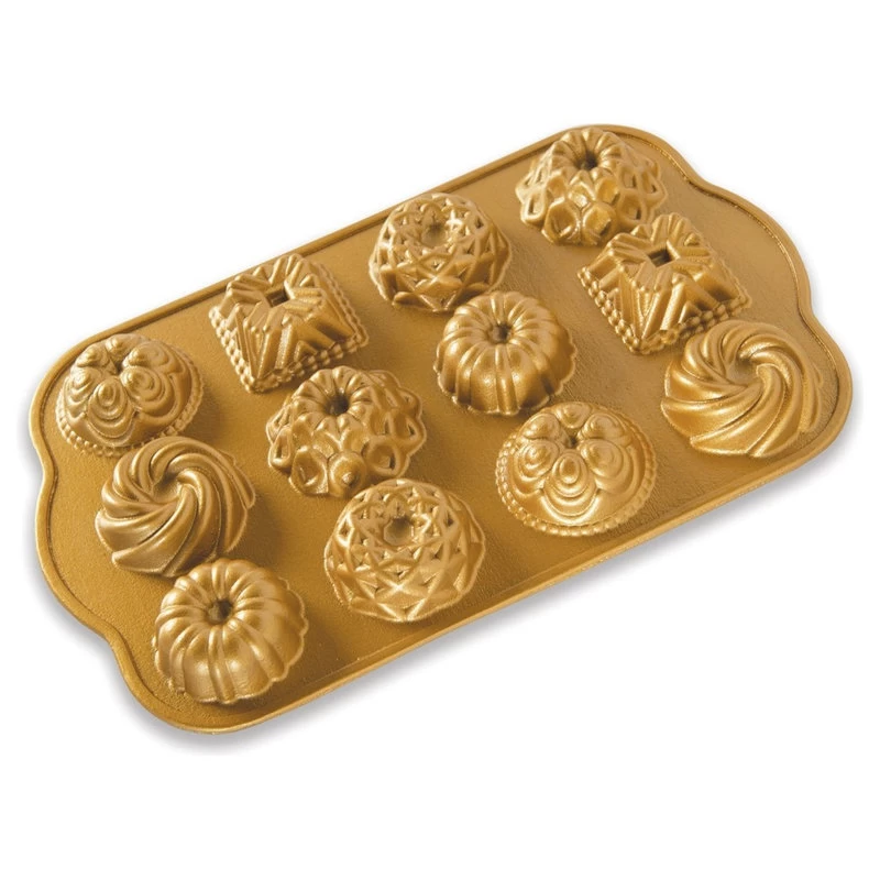 Bake delicious bite sized morsels in this bundt charms baking pan from Nordic Ware. Made from cast aluminum, the cavities have detailed designs that transfer beautifully to your baked goods. These mini cake molds have a nonstick surface that make release easy and effortless. This pan features six different patterns that create a variety that most other mini cake molds don’t offer. This pan was made in the USA and is dishwasher safe.