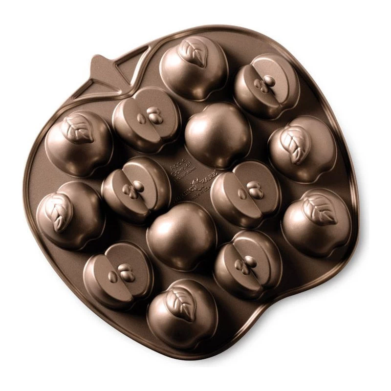 Bake delicious mini cakes with this apple slice cakelet pan from Nordic Ware. This gold pan is made from cast aluminum so it’s tough and durable. The baking surface is nonstick so your cakes easily release from the cavities. The cavities feature an apple slice design while integrated helper handles make transporting from oven to table simple. Even better, this pan is made in the USA and is backed by a manufacturer’s lifetime warranty.