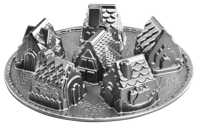 Entertain in style at your next holiday party with the cozy village pan from the Nordic Ware Platinum line. Constructed of durable cast aluminum, the nonstick surface allows for easy release of even the most detailed cakes. Featuring six unique cottages, the intricate detailing and fun designs of these cottages make them fun and easy to decorate, and your guests will love having their own mini cake. Simply dust them with powdered sugar and you have a snowy winter scene that is as delicious as it is decorative. Backed by a manufacturer’s lifetime warranty and made in the USA, this cozy village pan makes a great gift.