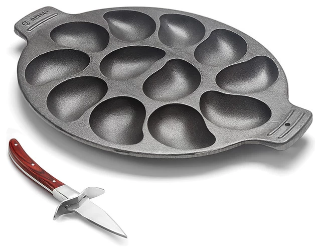 The world is your Oyster! Ok, maybe not the whole world, but this pan is your Oyster. Use this versatile 12-section pan to grill oysters on the half shell or shucked. Constructed of heavy duty cast iron, it features a seasoned, non-stick coating for easy release and cleaning. You can also use it to make single serving mac & cheese, drop biscuits, mini corn bread, and more. Fire up your creativity.