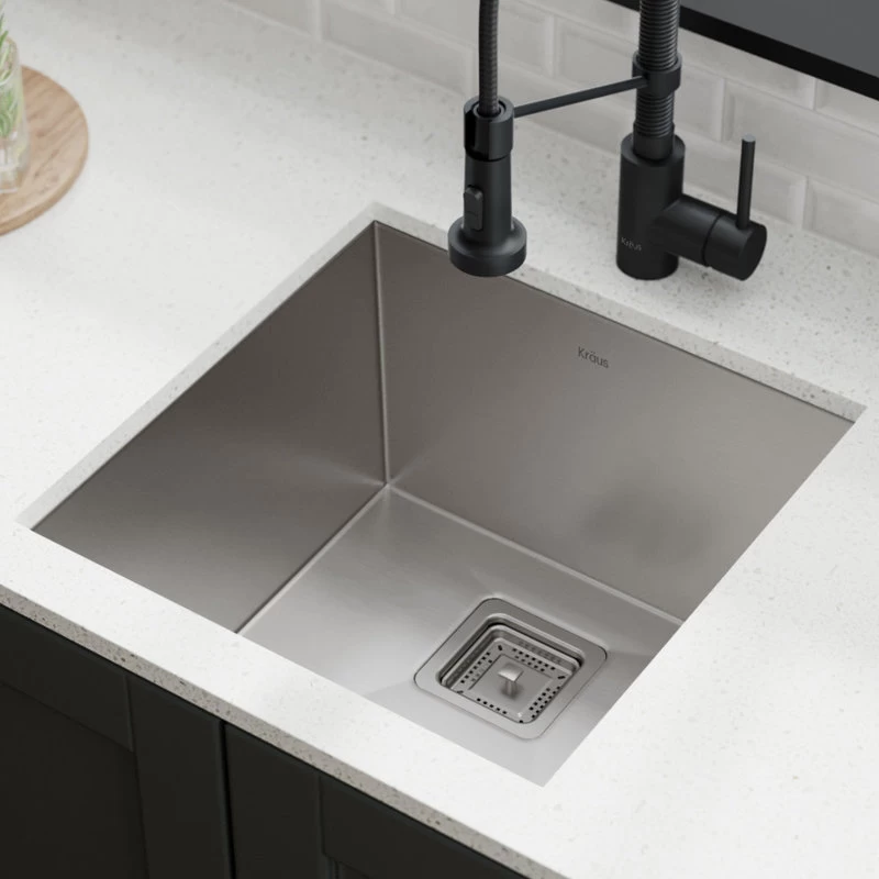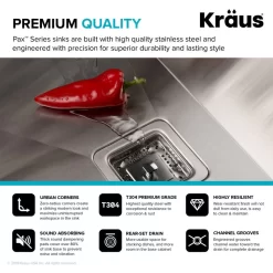 Create a high-end kitchen with the KRAUS Pax Series, featuring sleek modern designs with zero-radius corners. Wear-resistant satin finish offers a beautiful sheen, and easily wipes clean for minimal maintenance.