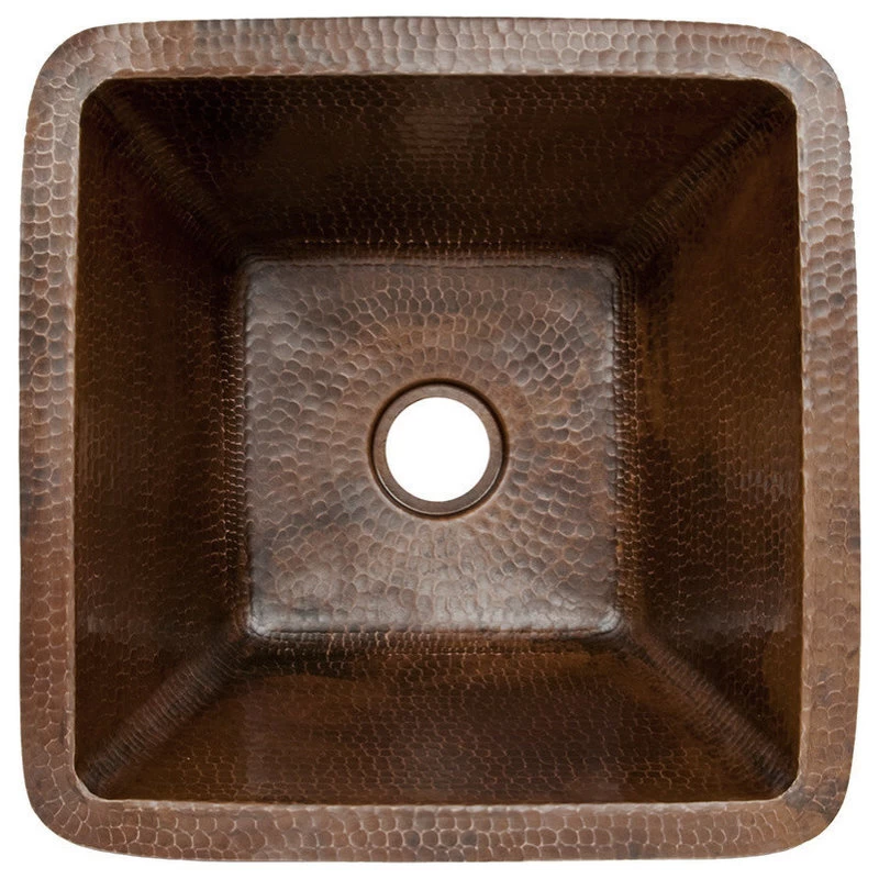 *15″ Square Hammered Copper Bar/Prep Sink with 2″ Drain Size – BS15DB2