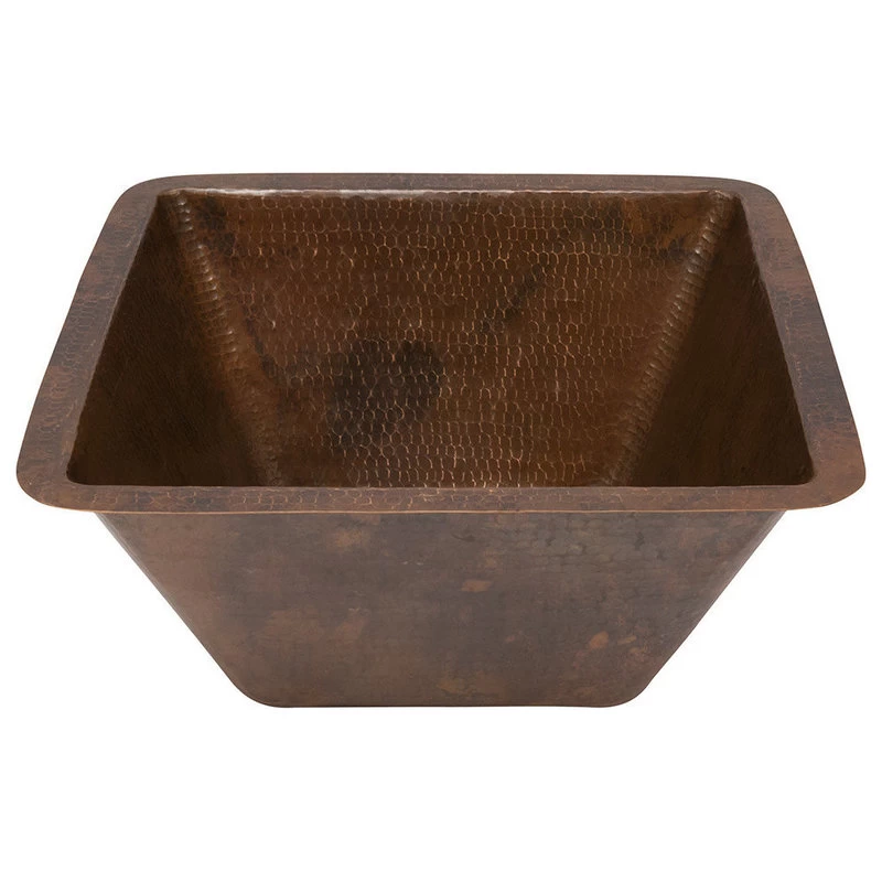 * Uncompromising quality, beauty, and functionality make up this Premier 15″ Square Hammered Copper Bar Sink with a 2″ Drain Opening. Green Recyclable Products like Copper Sinks are a must have in today’s modern home. This product is sure to impress your guests and satisfaction is always guaranteed.