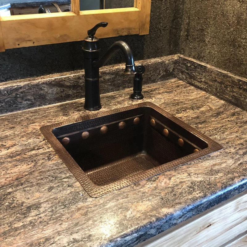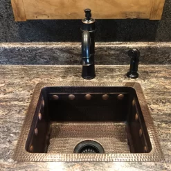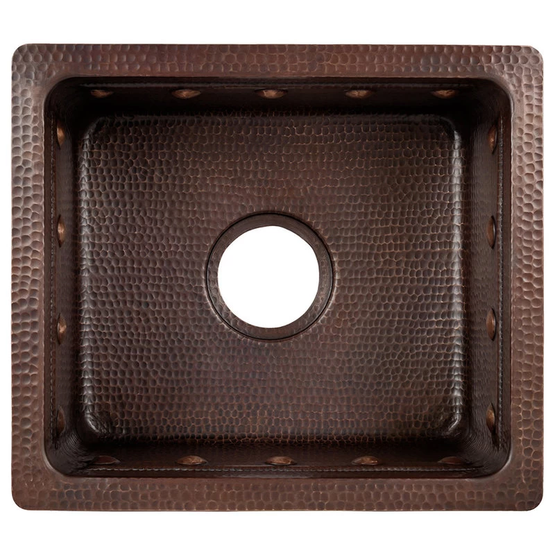 16″ Gourmet Rectangular Hammered Copper Bar/Prep Sink w/ Barrel Strap Design Features: