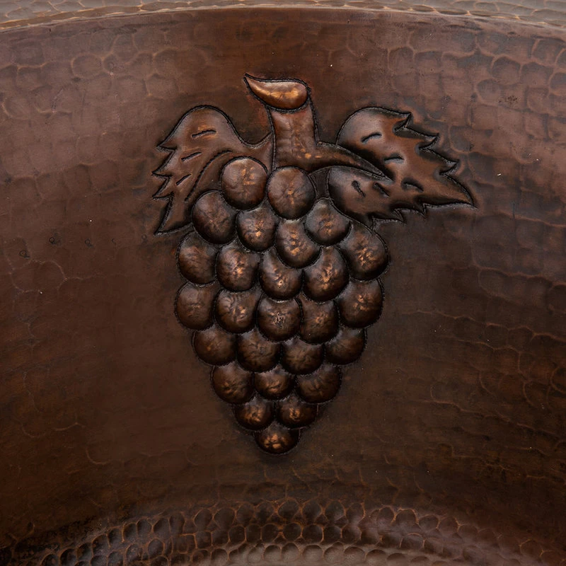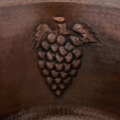16″ Round Copper Prep Sink w/ Grapes and 3.5″ Drain Opening
