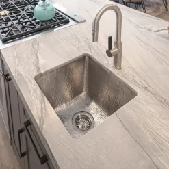 Premier Copper Products 17″ Large Square Hammered Copper Bar/Prep Sink, Nickel