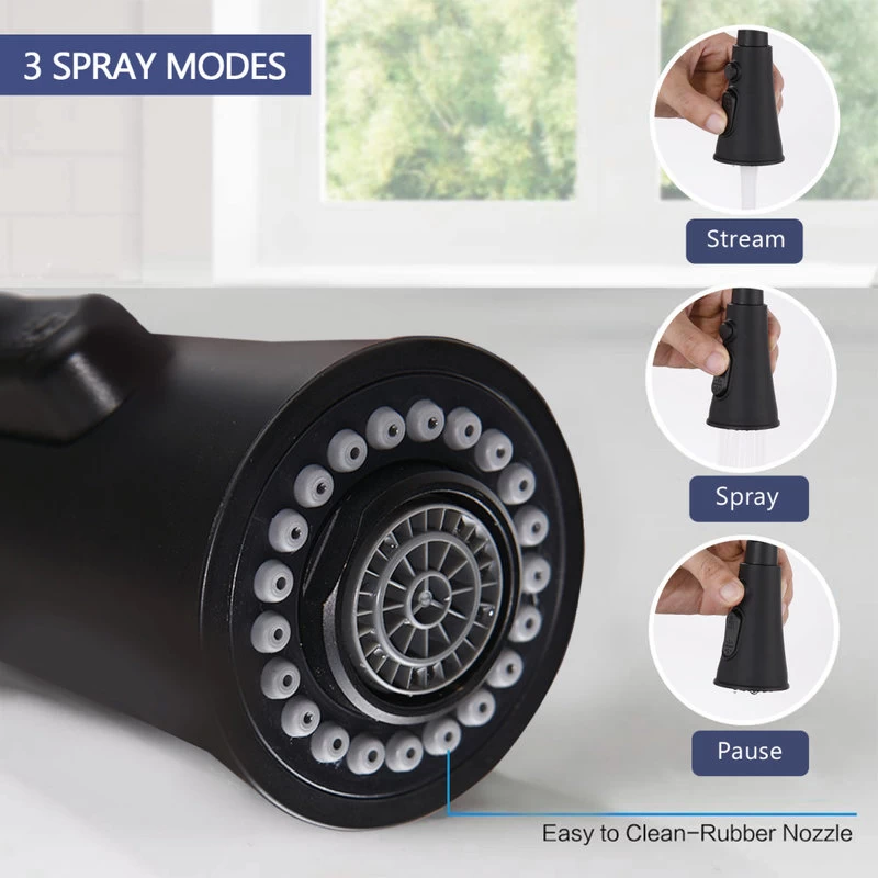 - Multifunctional Outlet Water Effect—3 way spray setting (STREAM,SPRAY,PAUSE),stream for filling water, spray for rinsing, pause for avoiding splashing in multitask mode.