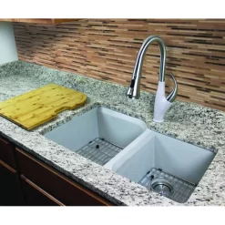 Karran 33″ Top Mount Double Equal Bowl Quartz Kitchen Sink, White
