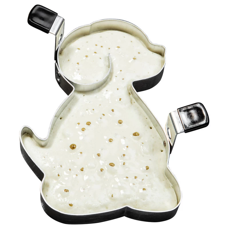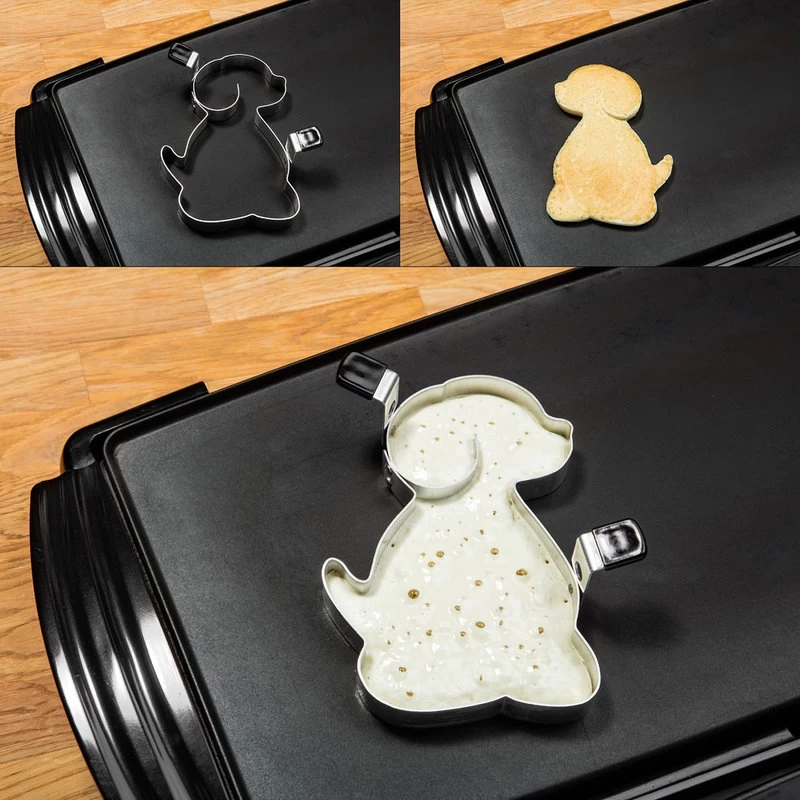 Puppy Shape-Its Food Forms are manufactured from an aircraft aluminum alloy that has been specially processed to provide years of durable use without losing its shape. These forms work great for shaping any kind of shapeable food (i.e. pancakes, cakes, cookies, gelatin, ice cream, marshmallow treats, brownies and more.) Each form is easy to clean, dishwasher safe, oven safe to 350 degrees and will not rust. All Shape-Its Forms are equipped with folding handles to make storing easy.