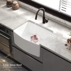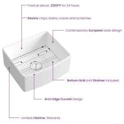 Crafted from the most durable material, this fireclay sink is baked at higher than 2,000 degrees F and features with a smooth, glossy surface that resist heat, stains and scratches. With the protective bottom grid and distinctive look, the Pure Fireclay Sink is truly crafted to match your design and functional desires.