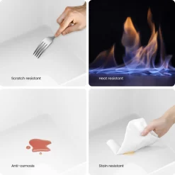 - Non-porous surface prevents discoloration and fading