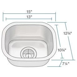 A moderate-sized, undermount bar sink with broadly-curved corners and a centerset drain is perfect for the entertainment area. The R1-1012-18 is constructed from a single sheet of the highest-quality 304 steel. Overall it measures 15″ x 12 3/4″ x 7 1/4″, with a heavy-duty, 18-gauge thickness. It will not rust or stain, features an alluring brushed satin finish, is insulated, quiet, and guaranteed by a limited lifetime warranty. Kit includes one deep basket strainer; a custom-fitted, stainless steel grid; and a tailor-made cutting board. Template and mounting hardware is included. Included is a fine-grained cutting board, custom-made to fit this basin. Created from the rubberwood tree, a natural hardwood, it is naturally mold and moisture resistant. Additionally, a groove along its perimeter channels away any runoff. To protect the sink surface from scratches or dents, one superior-quality, custom-fitted, stainless steel grid is included. Its removable rubber feet raise it slightly above the bottom of the sink. The included basket strainer is capable of holding much more waste than common models. Its roomy interior is perforated and can be removed with its own handle.