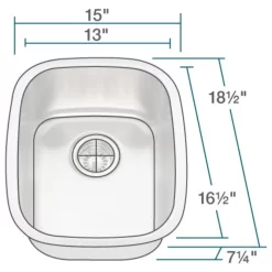 - Smart styling – narrow, undermount, bar sink with smooth corners and contemporary flair
