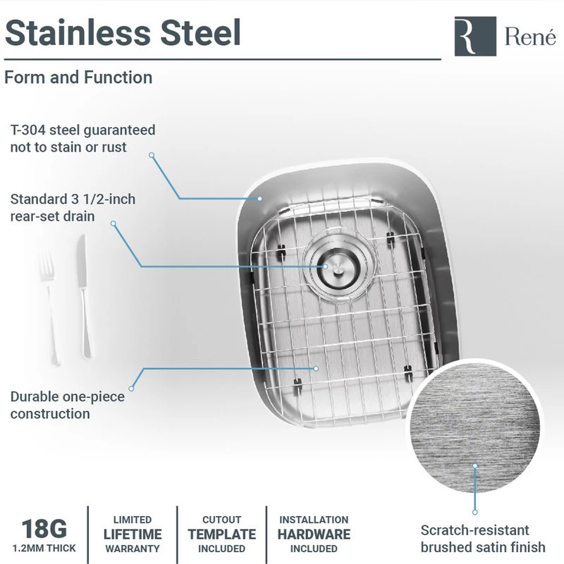 - Robust construction – 304-grade stainless steel in the industry standard 18-gauge thickness