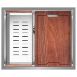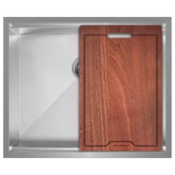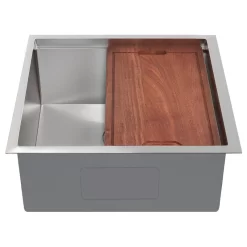 This Rivage Workstation Sink is the ultimate modern addition to any kitchen setting. From meal prep to cleanup, this stylish undermount single basin set comes with a strainer, colander, and cutting board, making your kitchen a streamlined workspace. Crafted with stainless steel, this product is durable and built to last. The deep bowl allows for uninterrupted space in washing and stacking dishes, along with other household tasks. Additionally, this product is stain and scratch resistant, along with being engineered to withstand high temperatures.