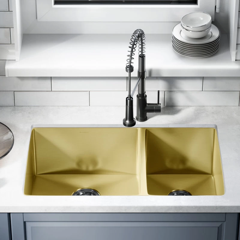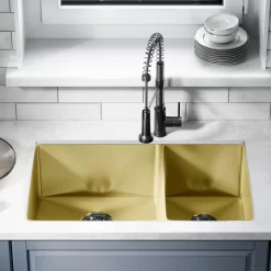 The Rivage Stainless Steel Dual Basin Undermount Sink is an enduring selection for any kitchen application. Its under-mounted design results in a smooth look and a flush mounting with any countertop material. A Rear offset drain allows for maximum undersink storage utilization.