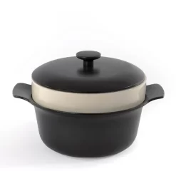 10″/4.4qt Black Covered Stockpot is made of Cast iron which has great heat retaining abilities: it’s the perfect choice for slow cooking and for hearty stews prepared in the oven or on the stovetop. The cover locks in the moisture and small bumps on the interior make sure the evaporated juices are directed on to the food for extra tasty results.