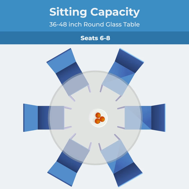 44” round clear glass tabletop can be used as a tabletop to protect a desk, patio table, surface of an existing table, coffee table and Bed Side table.