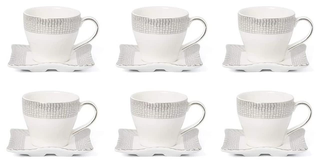 - Royalty Porcelain 12-pc “Silver Crocodile” Miniature Espresso Coffee Set for 6, 24K Gold-Plated, Superior Quality Bone China