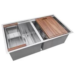 - WORKSTATION SINK: Ledges on the front and back provide a track for the included accessories.