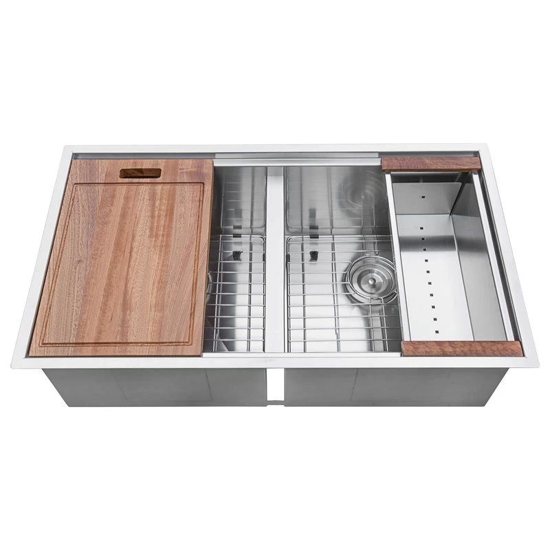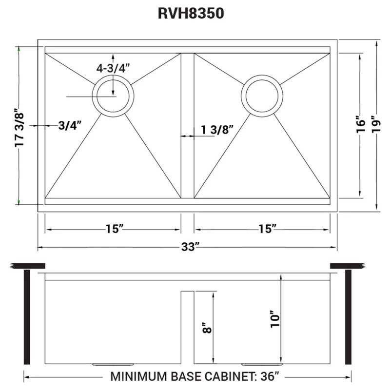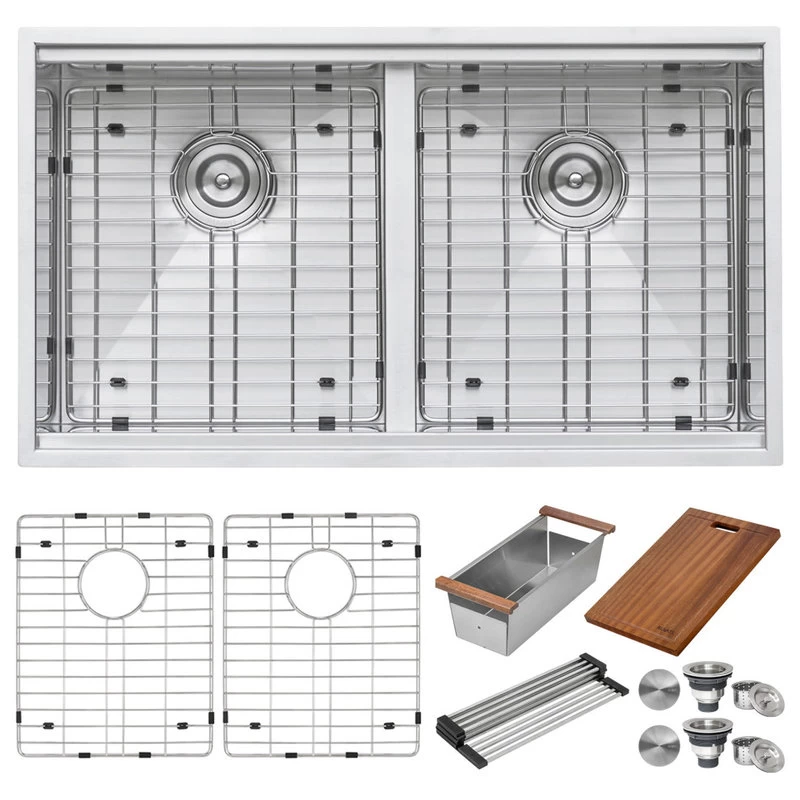 - LARGE DOUBLE BOWL SINK: 33-inch wide and 19-inch front-to-back gives you plenty of usable space.